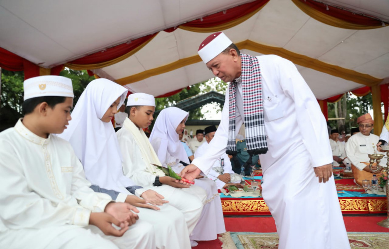 “Membaca Al-Qur’an jangan sampai berhenti disini saja, setelah khatam lanjutkan memperdalam, menghayati bahkan menghafal isi kandungan Al-Qur’an,” ungkapnya.