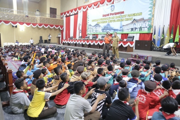 Para peserta Pramuka Penggalang ini disambut langsung oleh Pimpinan dan Anggota DPRD Provinsi Kepri, yakni Jumaga Nadeak, Hanafi Ekra, Husnizar Hood, Dr. Jusrizal, Abdul Rahman, Sukhri Farial, dan Teddy Jun Askara.