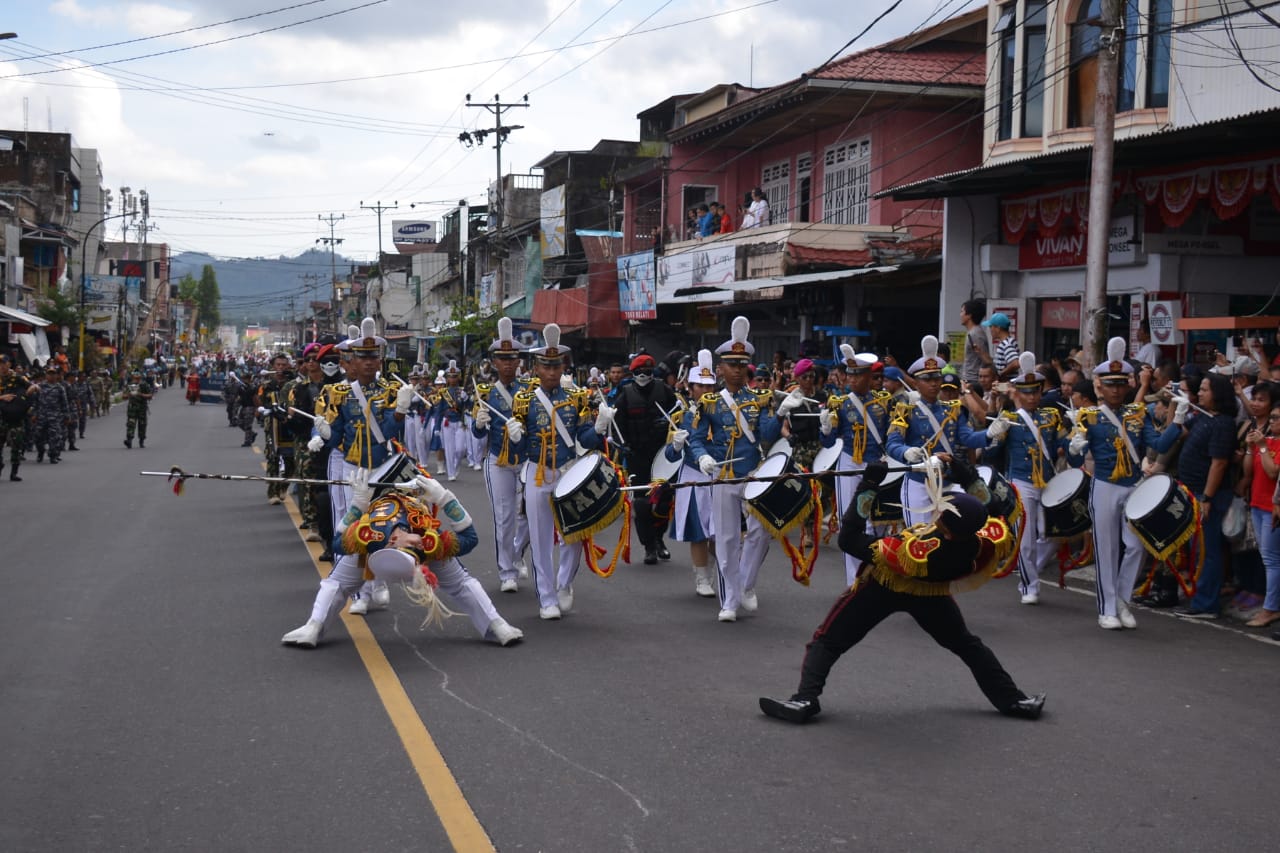 Selain Taruna dan Taruni yang tergabung dalam Satgas Jalayudha 2019, kirab kota tersebut diikuti oleh personel Mako Lantamal VIII, Satrol Lantamal VIII dan Yonmarhanlan Bitung, Siswa IPDN Tampusu Kota Tomohon, Siswa SMA Lokon serta Siswa SMA Katolik Karista Tomohon.*