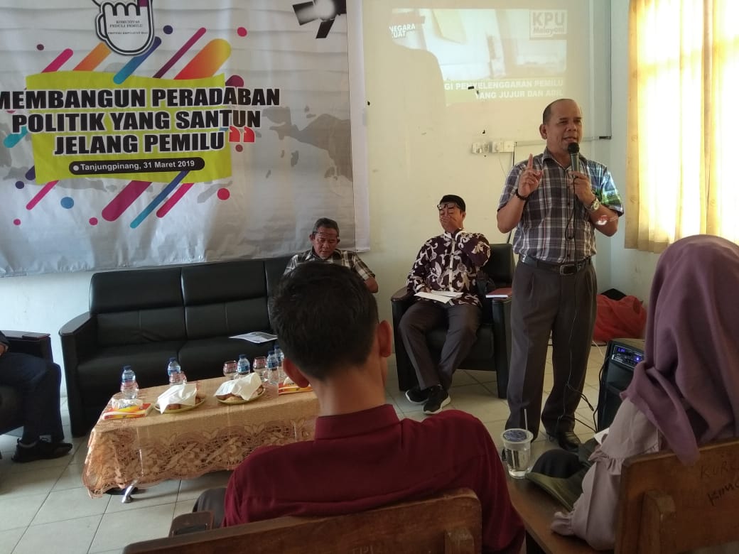 Ketua Bawaslu Tanjungpinang Muhamad Zaini dalam dialog bertema “Membangun Peradaban Politik Dalam Menghadapi Pemilu” di Kampus Sekolah Tinggi Ilmu Sosial dan Ilmu Politik Raja Haji Tanjungpinang, Minggu, mengatakan, perababan politik selaras dengan budaya melayu yang perlu dikembangkan oleh seluruh pihak, salah satunya pihak kampus.