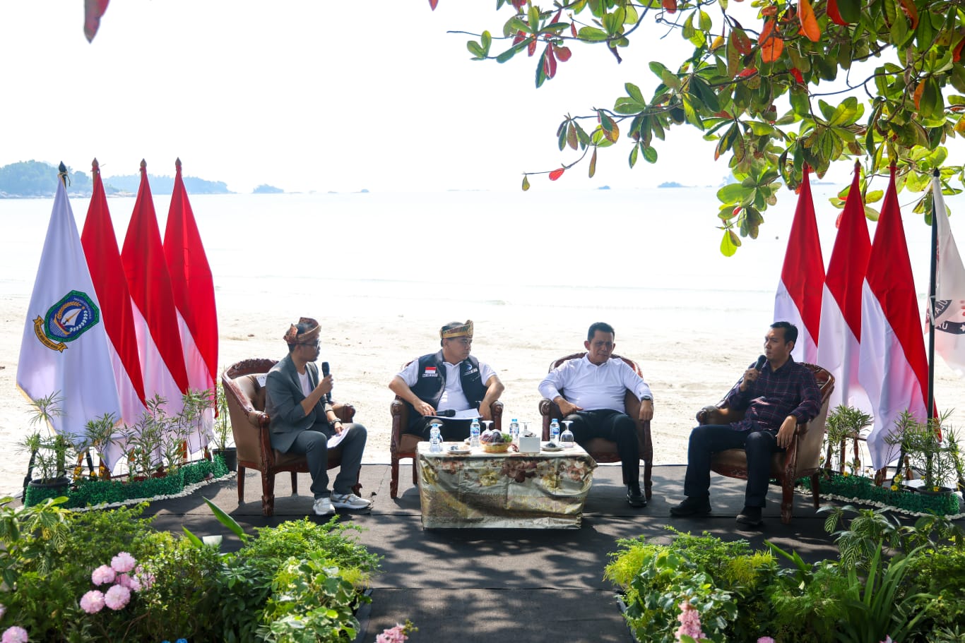 MLN, KEPRI – Gubernur Kepulauan Riau Ansar Ahmad bersama Menteri Komunikasi dan Informatika RI Budi Arie Setiadi dan Ketua Komisi Penyiaran Indonesia (KPI) Pusat Ubaidillah menjadi narasumber pada Dialog Interaktif pada Puncak Peringatan Hari Penyiaran Nasional (Harsiarnas) ke-90 di Lantai Lagoi Bay, Bintan, Sabtu (12/08).