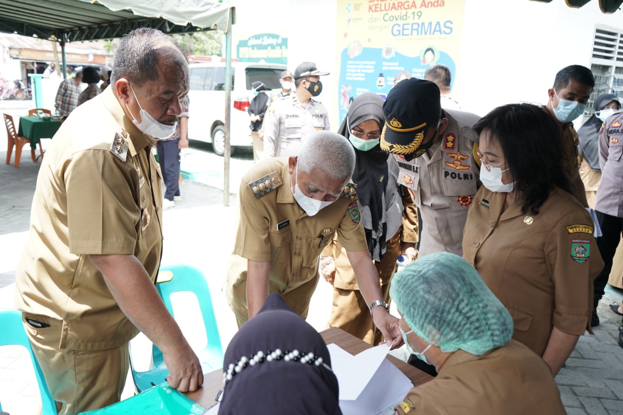 Dalam kesempatan Peninjauan Vaksinasi di Puskesmas yang dikunjungi Bupati berpesan agar warga yang telah divaksin diharapkan tetap mengikuti protokol kesehatan.