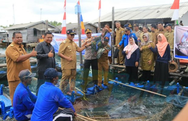 Bintan,Medialintasnusa.com : Bupati Bintan H. Apri Sujadi bersama kelompok masyarakat melakukan panen kerapu cantang di Kerambah Kelompok Masyarakat Mantang Besar, Senin (9/3). Budidaya ikan kerapu cantang ini bersumber dari Dana Desa TA. 2019 yang diperuntukkan bagi peningkatan ekonomi masyarakat.