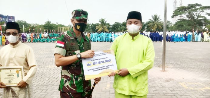 Dalam rangkaian acara, Danlanud berkesempatan memberikan secara simbolis Bantuan Transportasi Laut Bagi Siswa Tahun 2022.