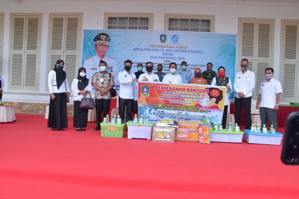 Dinas Pendidikan Provinsi Kepri Memberikan Bantuan ke RSUD RAT Berupa Hand SMK Sanitizer