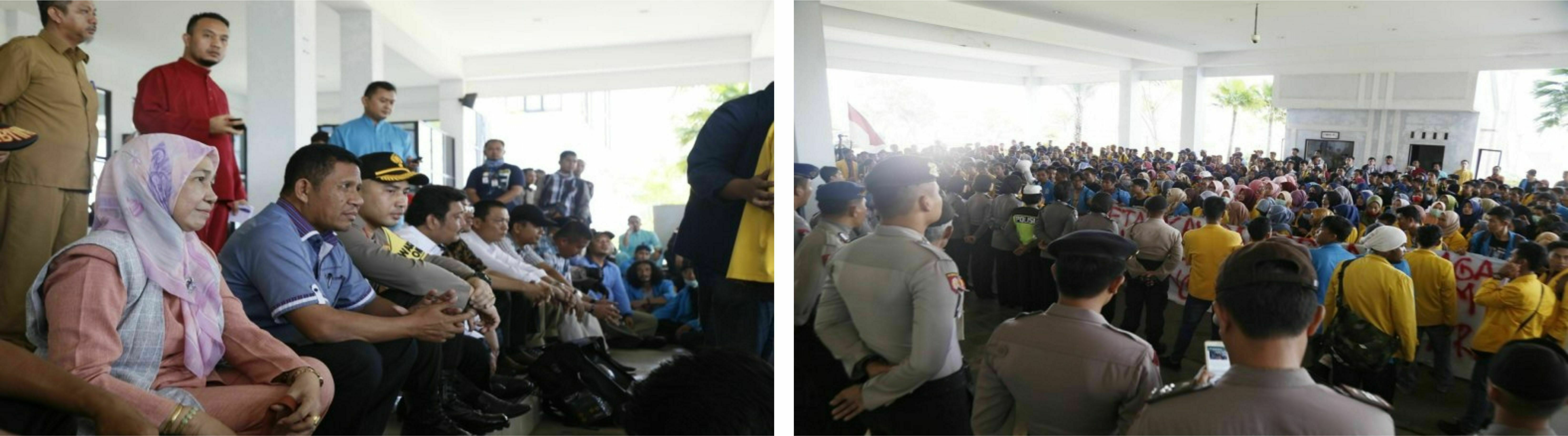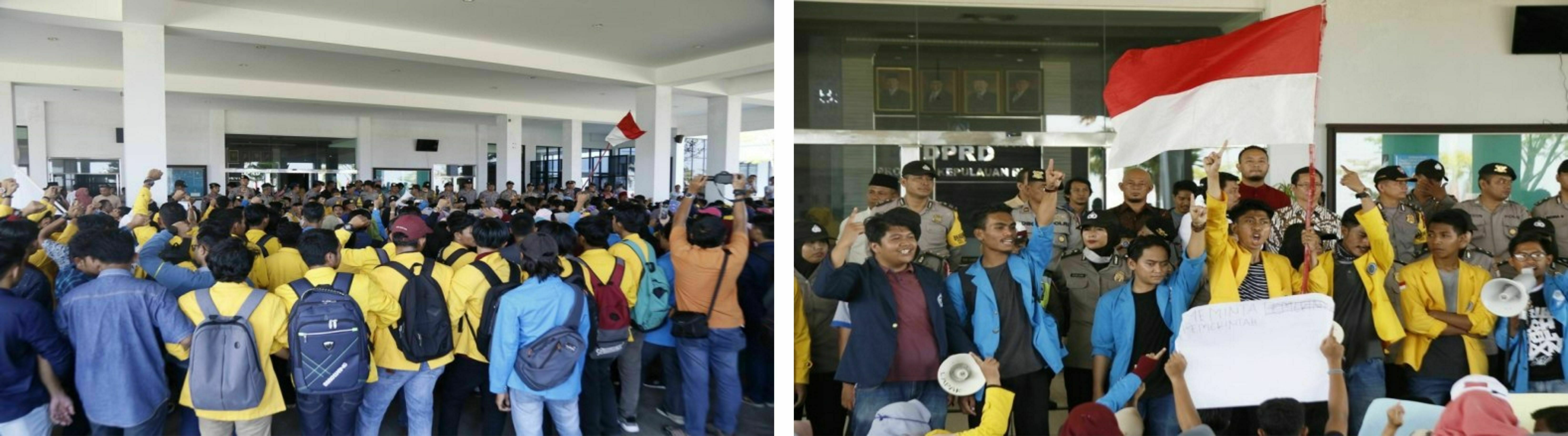 Kepri-Medialintasnusa.com : Sejumlah anggota DPRD Kepri menemui ratusan mahasiswa yang menggelar aksi unjuk rasa di Kantor DPRD Kepri, Selasa (25/9).
