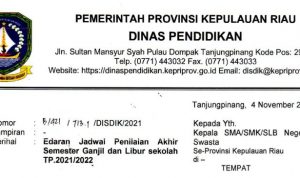 TANJUNGPINANG, MLN – Menindaklanjuti Surat Edaran dari Sekretaris Jenderal Kementerian Pendidikan, Kebudayaan, Riset dan Teknologi Nomor 32 Tahun 2021 Tanggal 14 Desember 2021 tentang Penyelenggaraan Pembelajaran menjelang libur Natal 2021 dan Tahun Baru 2022 dalam rangka pencegahan dan penanggulangan Corona Virus Disease 2019 (COVID-19),**