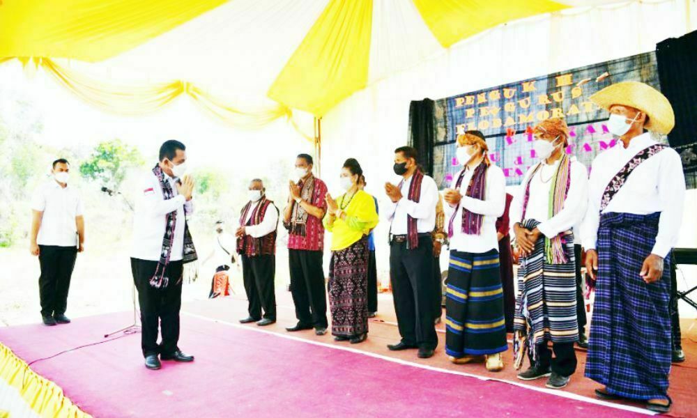 KEPRI, MLN – Gubernur Kepulauan Riau H. Ansar Ahmad mengukuhkan Pengurus Keluarga Besar Flobamorata Kabupaten Karimun periode 2022-2025 di halaman Gereja Katolik HKY Sungai Bati Karimun, Senin (14/2).