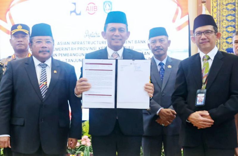 MLN, KEPRI – Gubernur Kepulauan Riau H. Ansar Ahmad menandatangani secara parsial Perjanjian Kerja Sama antara Kementerian PUPR RI, Asian Infrastructure Investment Bank (AIIB), dan Pemerintah Provinsi Kepulauan Riau dalam rangka persiapan pembangunan jembatan Batam – Bintan (pada sisi Kabil – Tanjung Sauh) di Gedung Daerah Tanjungpinang, Senin (09/01).
