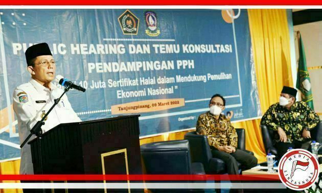 KEPRI, MLN – Gubernur Kepulauan Riau H. Ansar Ahmad resmi membuka Public Hearing dan Temu Konsultasi Pendampingan Proses Produk Halal (PPH) yang digelar Kantor Wilayah Kementerian Agama Kepulauan Riau di Hotel CK, Tanjungpinang, Rabu (09/03/2022).