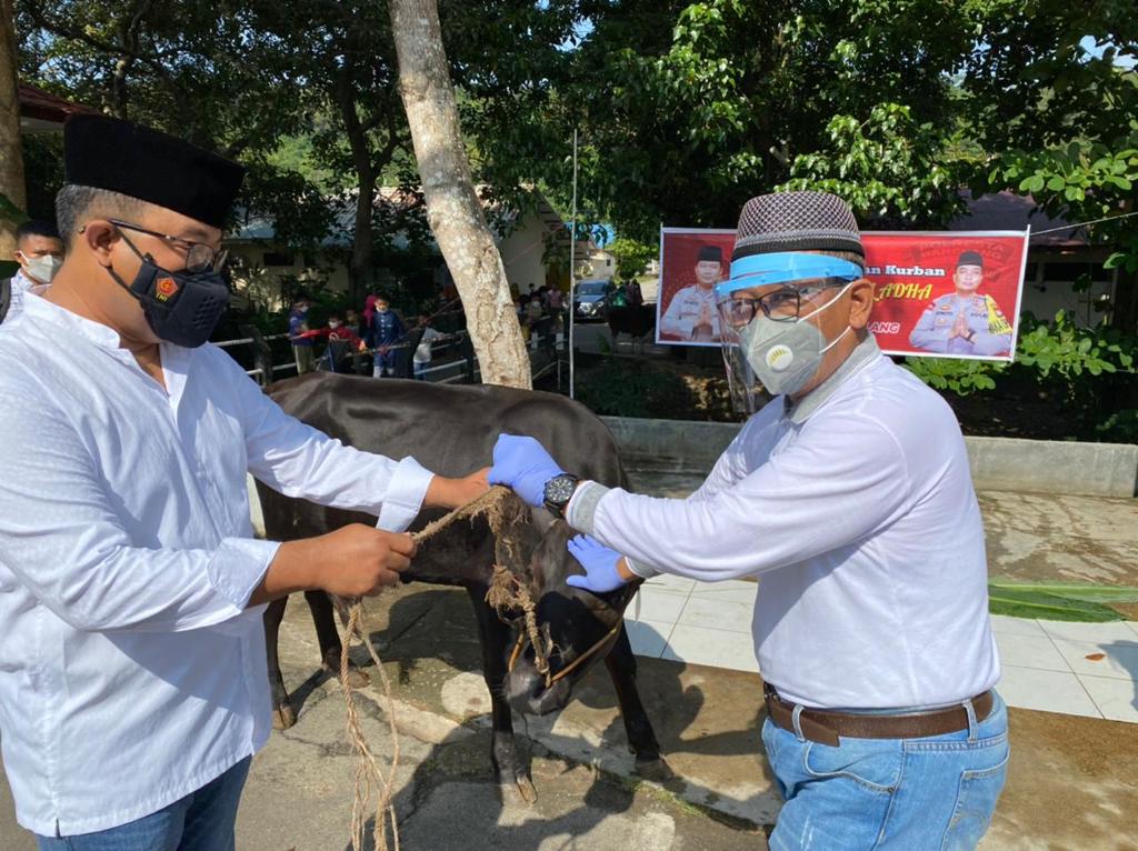 Mudah- mudahan dengan di tengah pandemi Covid-19 apa yang kami kurbankan dapat membantu masyarakat yang sangat membutuhkan untuk pendistribusiannya kami serahkan kepada panitia dengan berkoordinasi dengan pihak masjid silahkan bagikan kepada masyarakat yang membutuhkan, ungkap Kapolresta Barelang.
