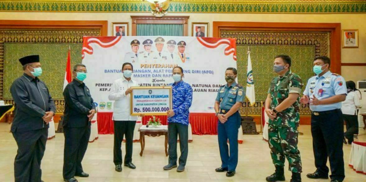 Bantuan kepada Pemerintah Kabupaten Lingga berupa bantuan keuangan sebesar 500 juta rupiah, APD sebanyak 60 pcs, masker sebanyak 200 pcs dan Rapid test sebanyak 100 pcs. Kepada Pemerintah Kabupaten Kepulauan Anambas dengan bantuan keuangan 500 juta rupiah, APD sebanyak 110 pcs, masker sebanyak 150 pcs dan Rapid test sebanyak 100 pcs.