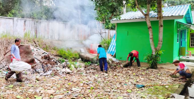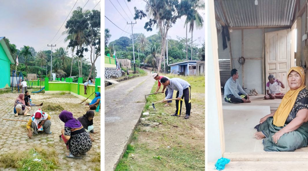 “Hari ini kita laksanakan gotong royong bersama seluruh warga membersihkan lingkungan kantor desa dan pemukiman warga. Goro ini kita laksanakan dalam rangka memperingati Maulid Nabi Muhammad SAW,” ujar Kades Iwan.