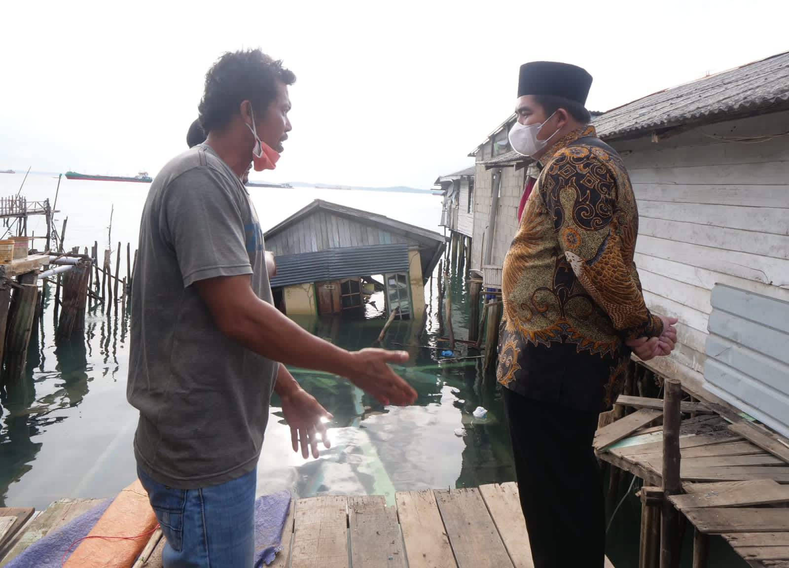 Awi, salah satu korban yang berprofesi sebagai nelayan menuturkan bahwa rumahnya ambruk dikarenakan angin kencang disertai dengan air laut yang pasang tinggi selama dua pekan terakhir.