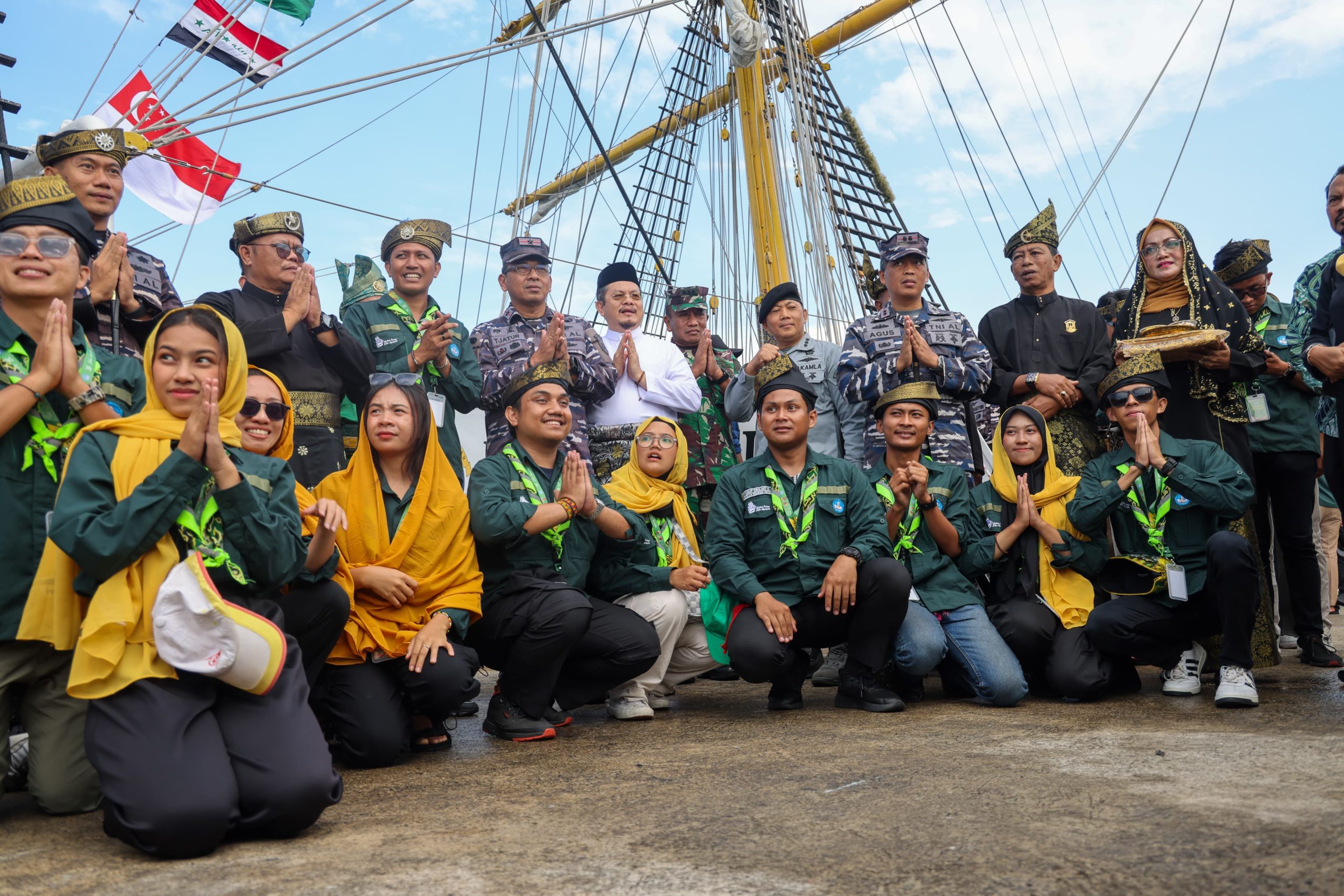 Selanjutnya, Komandan KRI Dewaruci Letkol Laut (P) Rhony Lutvia disematkan tanjak bersama dengan seluruh anggota Laskar Rempah. Rombongan pun diarak dengan tepukan kompang menuju gedung serbaguna lalu disambut kembali dengan Tari Sekapur Sirih.
