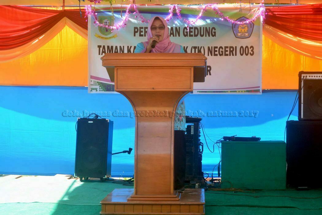 Hal ini disampaikan Wakil Bupati Natuna, Dra. Hj. Ngesti Yuni Suprapti,MA ketika meresmikan Gedung Taman Kanak–Kanak (TK) Negeri 003 Sebakung, Desa Batu Gajah Kecamatan Bunguran Timur, dihadiri oleh perwakilan beberapa OPD, Camat Bunguran Timur, beberapa Kepala Sekolah TK di Kecamatan Bunguran Timur, insan pendidikan dan masyarakat setempat, sabtu (04/02) pagi.