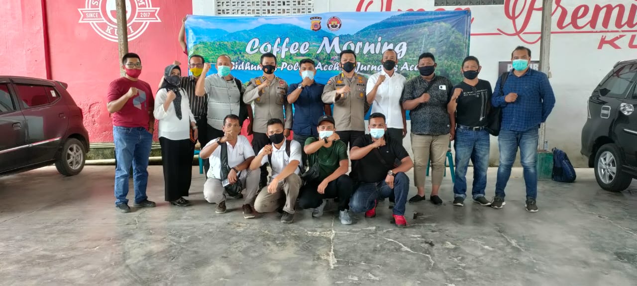 BANDA ACEH , MEDIALINTASNUSA.COM – Kepolisian Daerah Aceh melalui Bid Humas Polda Aceh, Senin (22/02/2021) menggelar kegiatan kemitraan yang dikemas dalam acara Coffe Morning bertempat di Smea Premium Kopi, Lingke, Kota Banda Aceh.