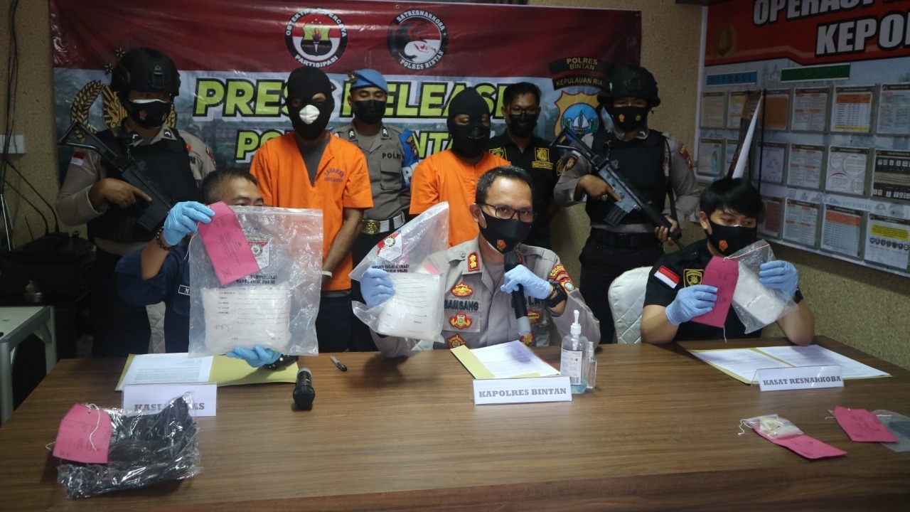 Saat ini kedua Tersangka masih ditahan di Rutan Polres Bintan dengan perkara UU Ri No. 35 Tahun 2009 tentang Narkotika yaitu Pasal 114 Ayat (2) dengan ancaman pidana mati, penjara seumur hidup, atau paling singkat 6 tahun dan paling lama 20 Tahun dan Pasal 112 Ayat (2), Pasal 113 Ayat (2) UU Ri No. 35 Tahun 2009 tentang Narkotika.**