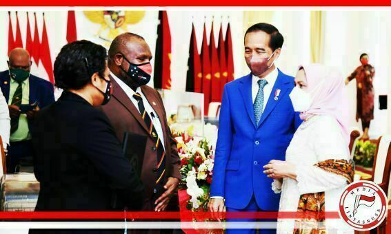 NASIONAL, MLN – Presiden Joko Widodo menggelar pertemuan bilateral dengan Perdana Menteri (PM) Papua Nugini (PNG), James Marape, dalam kunjungan resminya ke Istana Kepresidenan Bogor, Jawa Barat, Kamis (31/03/2022). Dalam pertemuan yang berlangsung hangat dan produktif tersebut, kedua pemimpin negara membahas sejumlah peningkatan kerja sama di berbagai bidang.