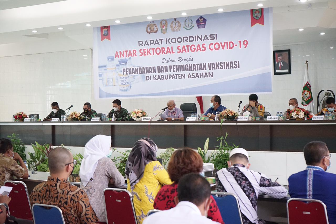 ASAHAN, MEDIALINTASNUSA.COM – Gugus Tugas Percepatan Penanganan Covid-19 Kabupaten Asahan menggelar Rapat Koordinasi Antar Sektoral Satgas Covid-19 dalam rangka penanganan dan peningkatan vaksin di Kabupaten Asahan yang bertempat di Aula Melati Kantor Bupati Asahan, Kamis (01/04/2021).