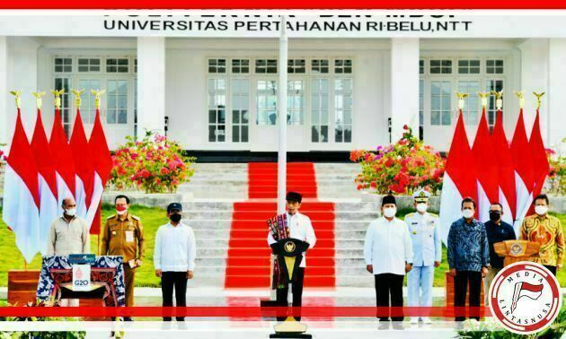 NASIONAL, MLN – Presiden Joko Widodo meresmikan Politeknik Dr. Aloysius Benedictus Mboi, Universitas Pertahanan Republik Indonesia (Unhan) di Kabupaten Belu, Nusa Tenggara Timur (NTT), pada Kamis, 24 Maret 2022. Dalam sambutannya, Presiden menekankan bahwa pembangunan sumber daya manusia (SDM) di seluruh Tanah Air merupakan fondasi untuk Indonesia Maju.