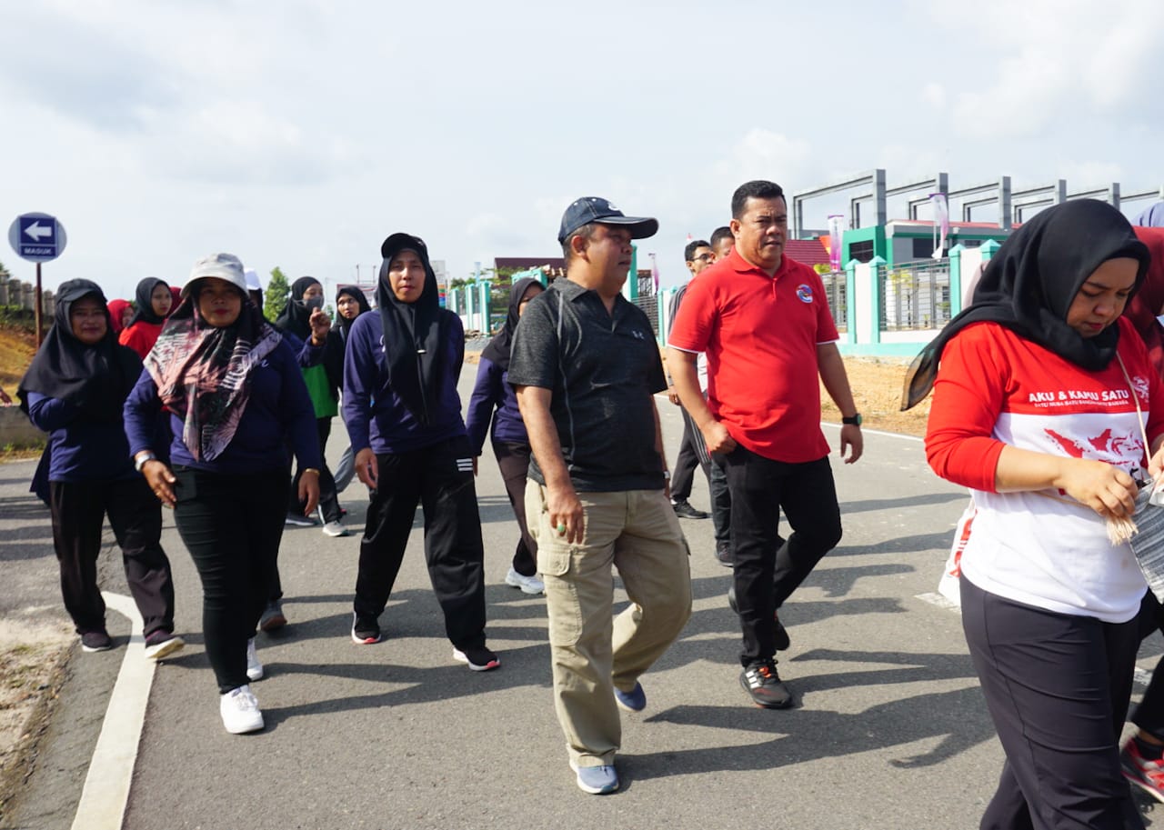 MLN, BINTAN – Sekda Bintan, Ronny Kartika mengikuti jalan santai bersama para pegawai di lingkungan Sekretariat Daerah Kabupaten Bintan dalam rangka menyambut Hari Ulang Tahun Kemerdekaan Republik Indonesia (HUT RI) ke 78, di Kantor Bupati Bintan , Kamis (31/8) pagi.