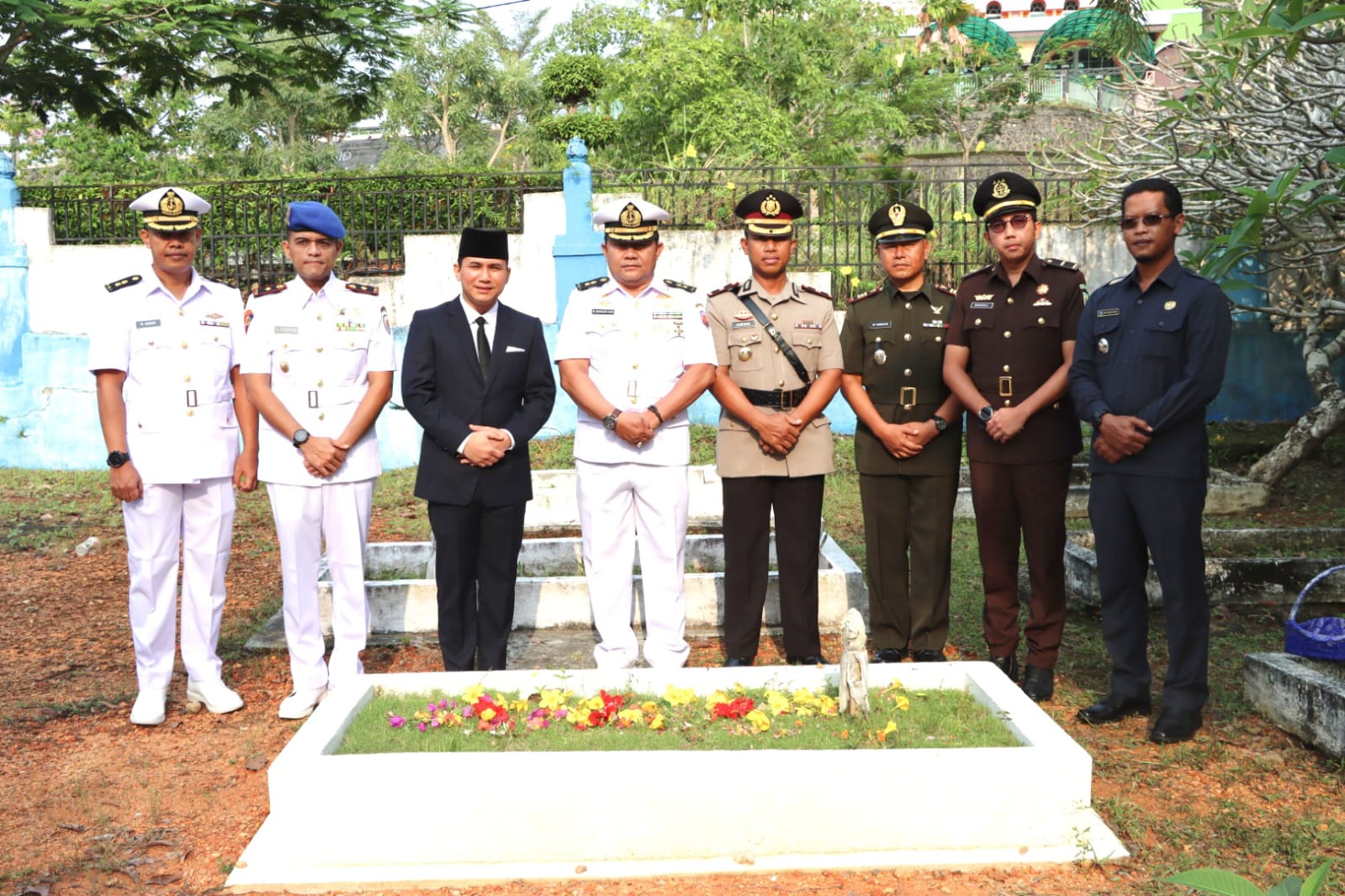 Usai pelaksanaan upacara Ziarah, Wabup Osit kemudian menaburi bunga di Makam para kusuma bangsa. Bersama jajaran FKPD Bintan, masing-masing kemudian memunajahkan doa memohon kebahagiaan akhirat bagi para pendahulu.