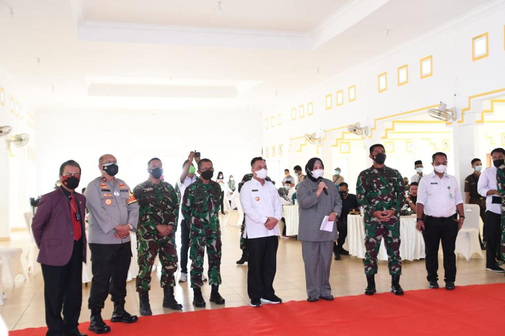 LINGGA, MLN – Wakil Komandan Pangkalan Utama TNI Angkatan Laut IV (Wadanlantamal IV) Tanjungpinang Kolonel Marinir Andi Rahmat M bersama Wakil Gubernur Provinsi Kepri Hj. Marlin Agustina, Waka Polda Kepri, Danrem 033/WP, Bupati Lingga dan OPD terkait hadiri acara Penutupan Tentara Manunggal Membangun Desa (TMMD) ke-111 Tahun 2021 yang berlangsung di Gedung Nasional Jl. Garuda Dabo Singkep Lingga Kepri, Rabu siang (14/7/2021).