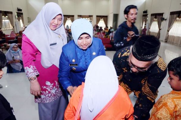 Walikota Tanjungpinang Rahma Bagikan Seragam Gratis Untuk 7.514 Siswa SD dan SMP.