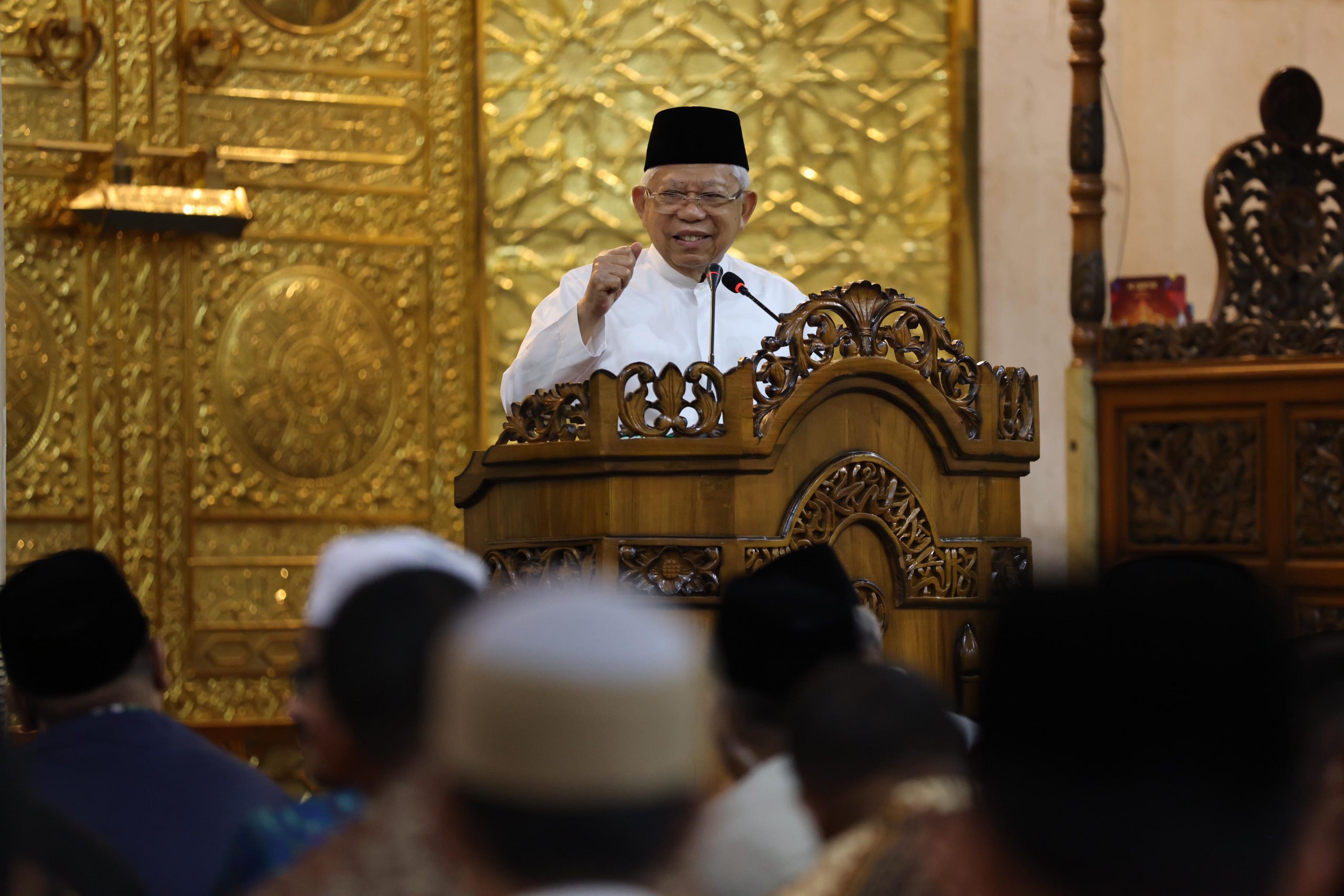 Sebelum memulai khutbahnya, Wapres Ma’ruf Amin mengaku bersyukur dapat beribadah berjamaah bersama di Masjid Besar Al Uswah sebagai bagian dari rangkaian kunjungan kerjanya ke Kepri.
